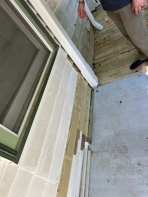 Greenleaf Building Group worker installs metal siding as part of exterior remodeling services.